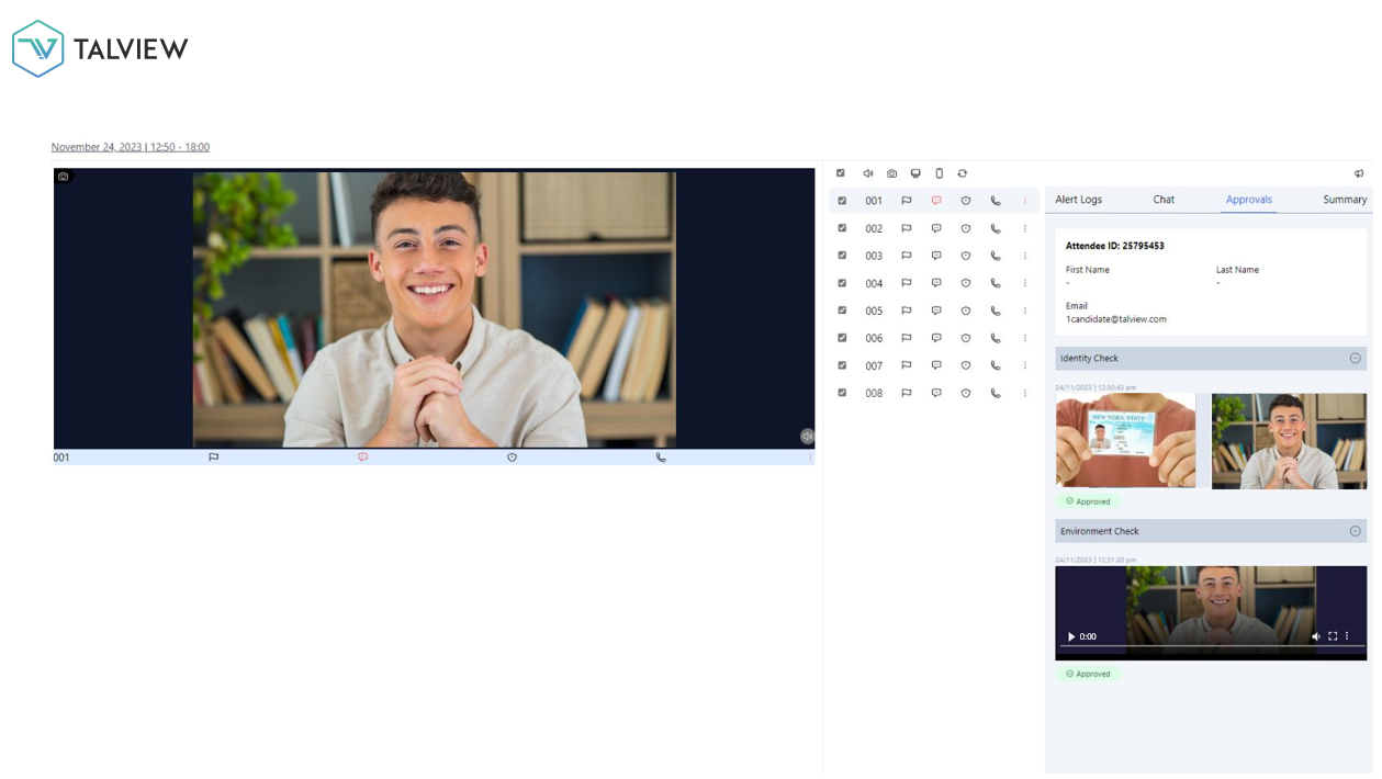 - Approval: If the validation is successful, the proctor clicks the "Approve" button. The candidate is then taken to the assessment screen once the test starts.